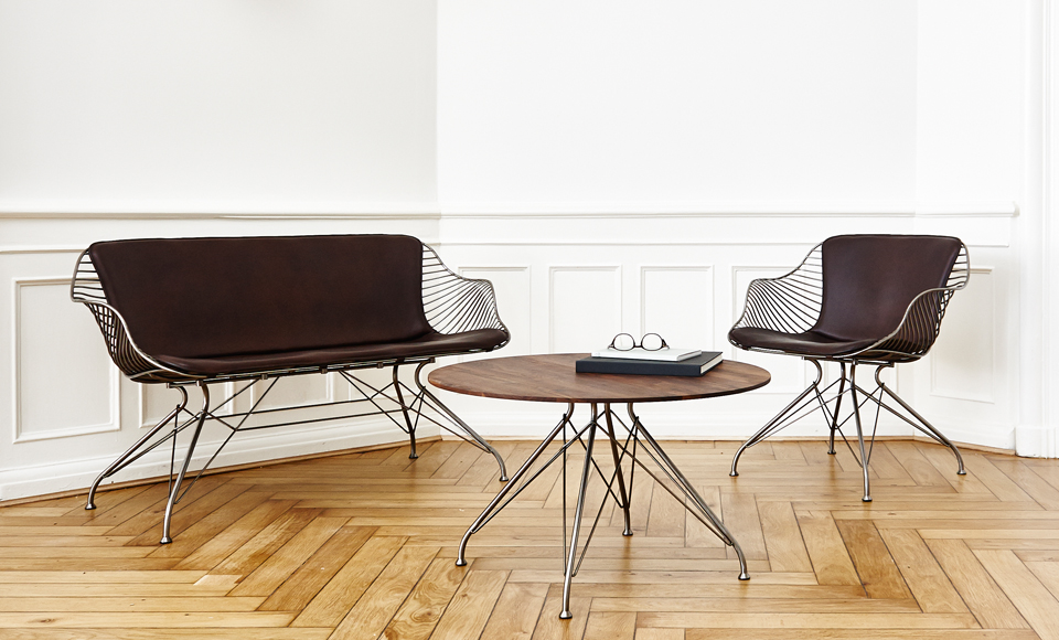 金属丝沙发椅由Jasper Overgaard和Christian Dyrman设计。2014年推出的铁丝餐椅成为了金属丝系列的起点。