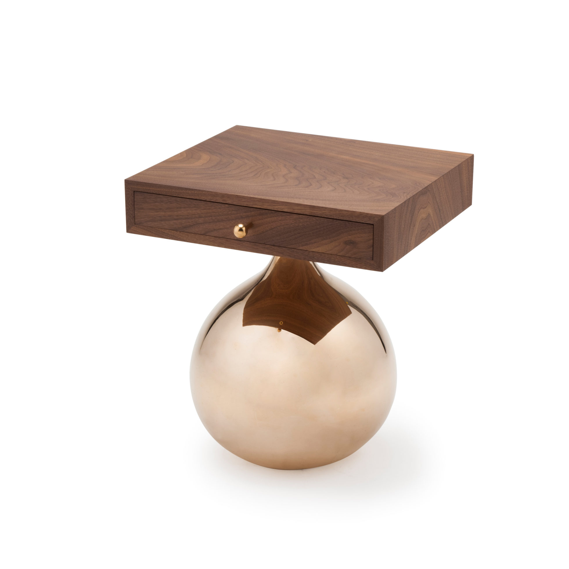 边桌上有一个抛光的青铜底座。 顶部以坚实的美国黑胡桃天然油和光显示。