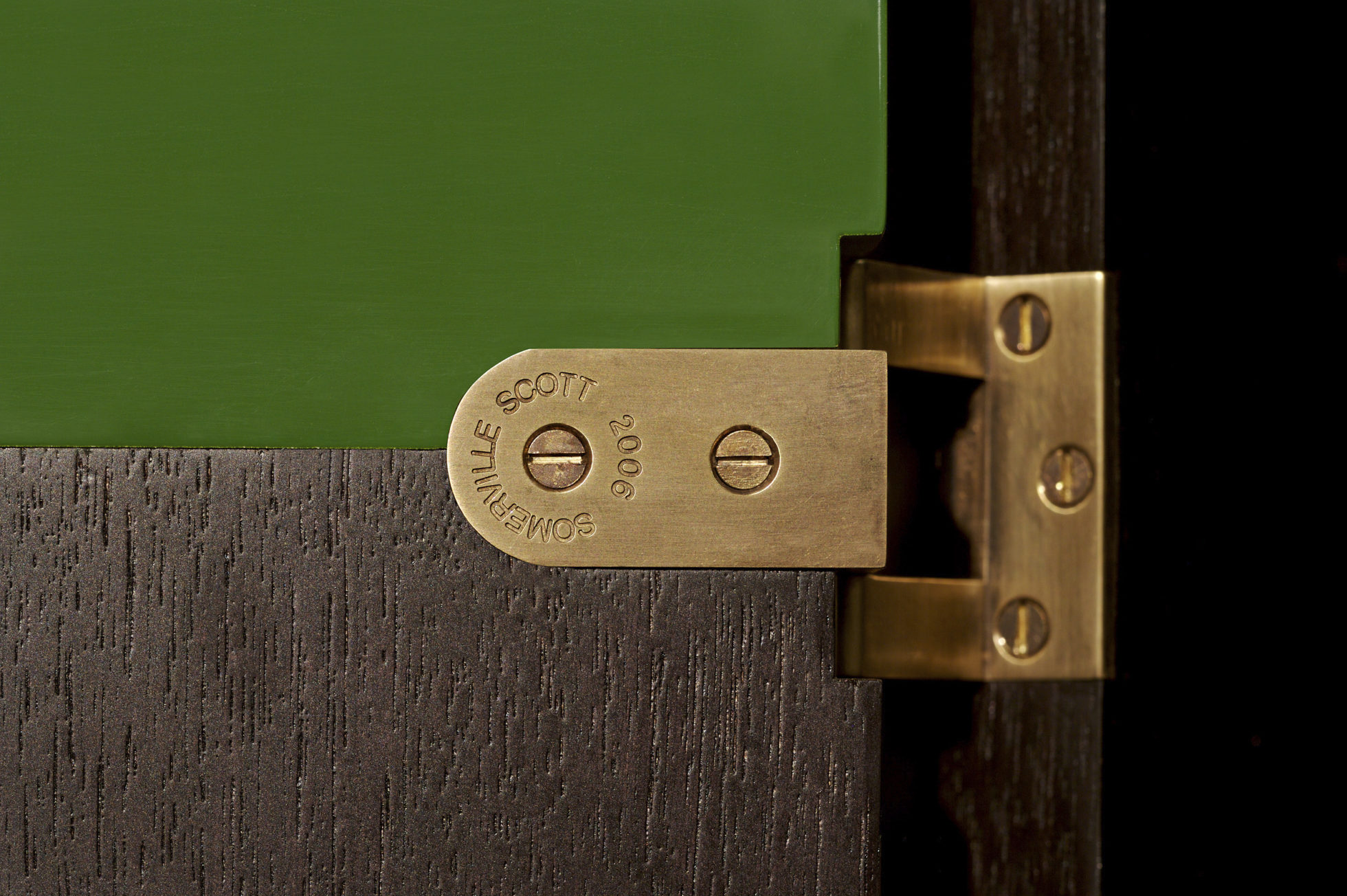 美式黑胡桃黑色饮料柜,带多个抽屉和门。 高光红色和绿色漆,白金叶和黄铜色的细节。 内置橱柜门定制手柄和实心黄铜铰链。 最好的杂技橱柜制作。