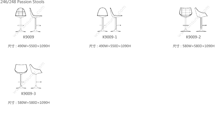 246/248 Passion Stools 系列尺寸/示意图