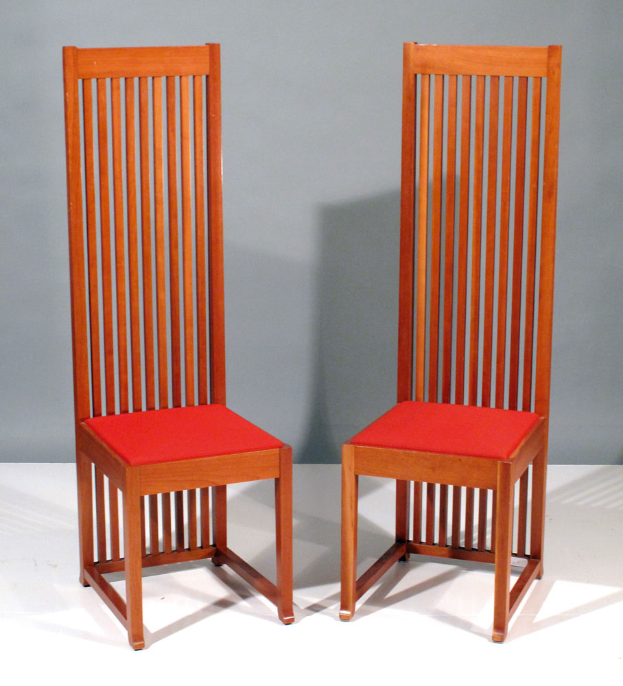 高背椅,采用天然樱桃木戒樱桃木色的胡桃木制造。座垫采用聚氨酯海绵填充。布艺面料戒皮革软包。