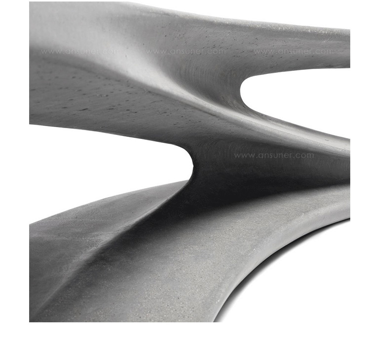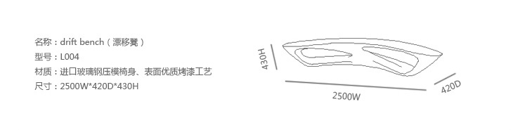 塑料材質一體成型製成,表面塗裝可選擇霧面或亮面烤漆。多功能性的設計,能應付各式空間的需求。建築般的立體雕塑,刻畫了一只流動的造型長凳。
