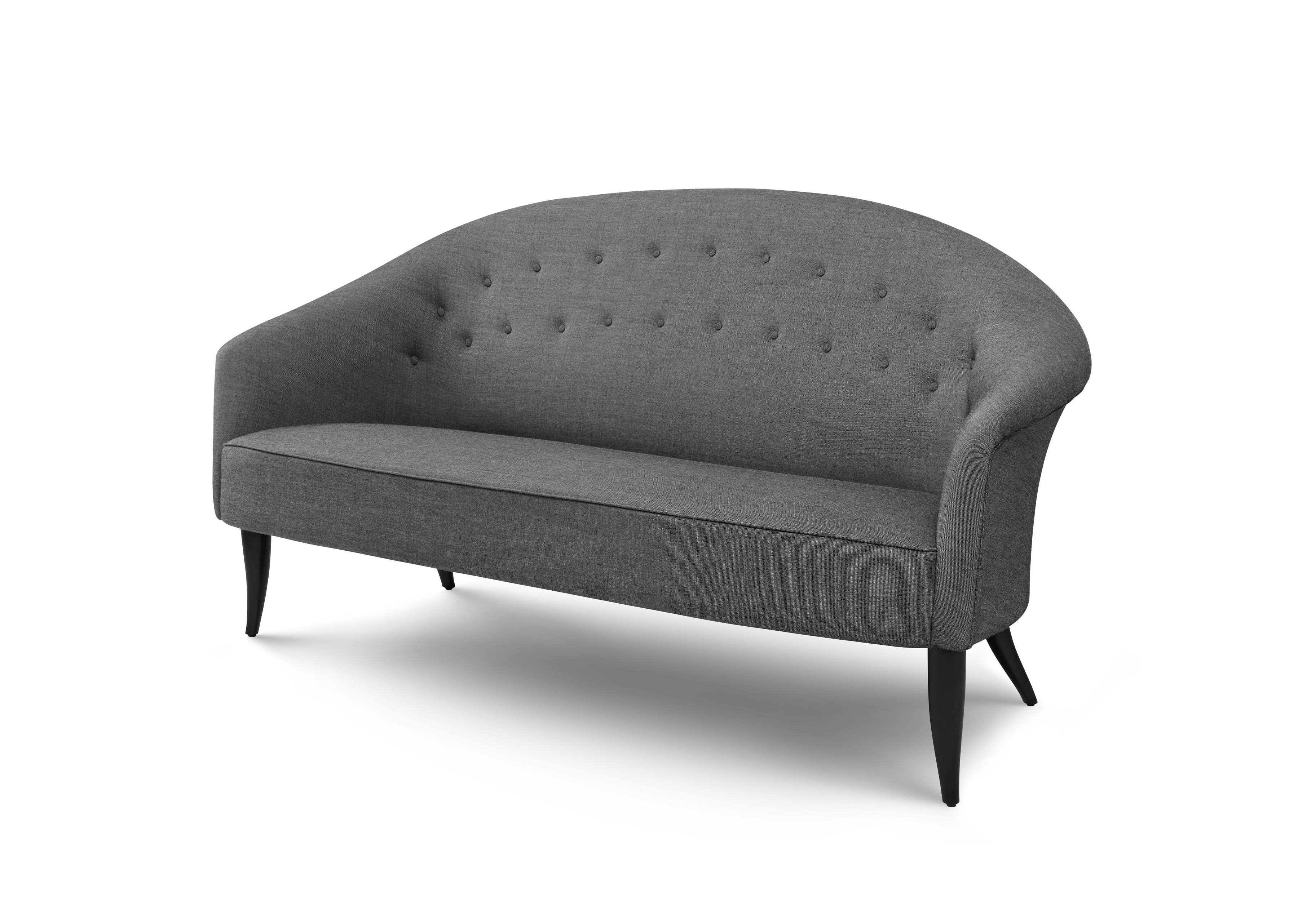 1958年,Kerstin H. Holmquist为NK Nordiska Kompaniet设计的天堂沙发,提升了优雅和有机的形状——这是瑞典现代设计的一大特色。柔软的背部线条,平滑地延伸到扶手,给人一种古典的吸引力,锥形的和弯曲的腿给2.5座的沙发设计带来了一种异想天开的扭曲。