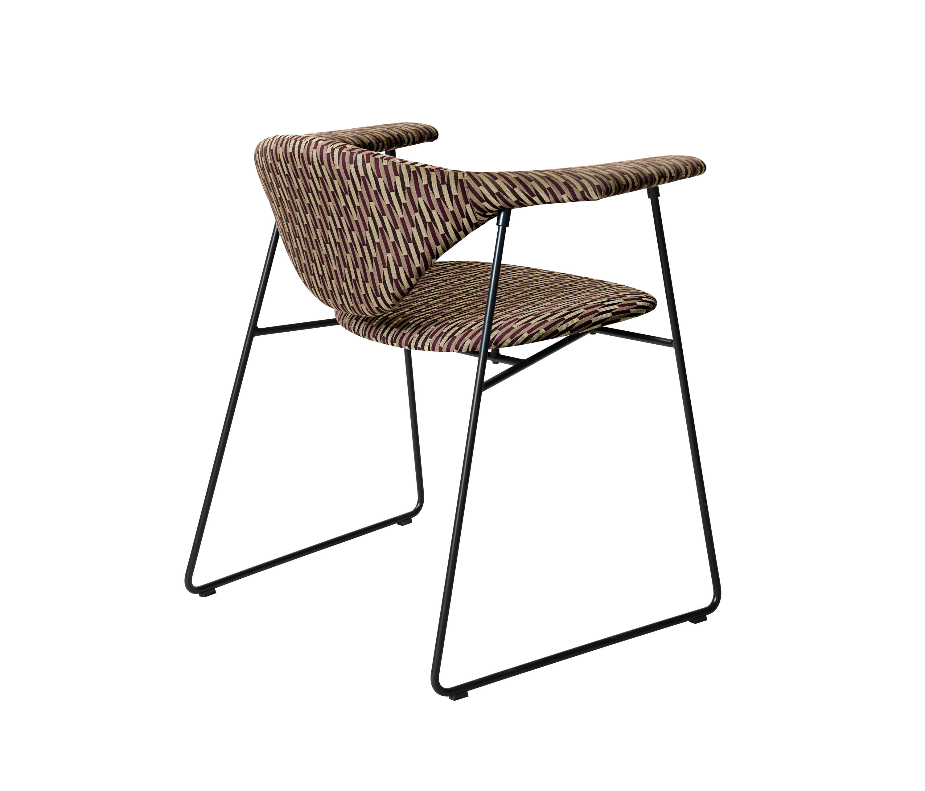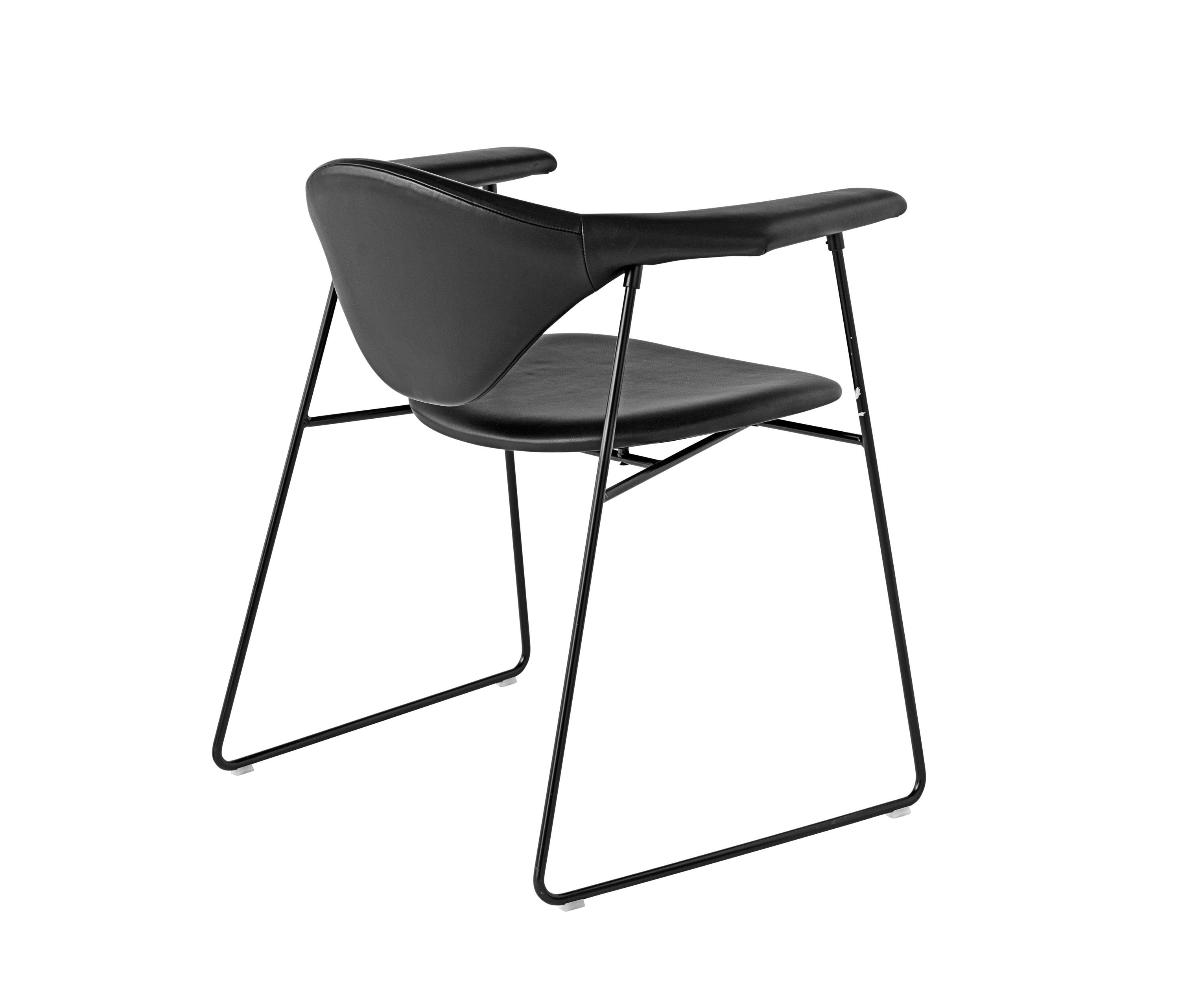 通过GamFratesi的Masculo系列,我们看到了Gubi推出的全新潜在经典家具系列。 Masculo雪橇基座椅采用粉末涂层黑色或铬钢杆结构。 座椅和靠背可以选择布料或皮革装饰。 包括塑料滑动,可根据要求提供毛毡滑动。 还提供不同的基本选择以及休息室版本。