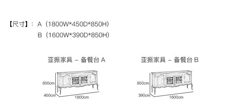 亚振家具 - 备餐台 产品尺寸/示意图