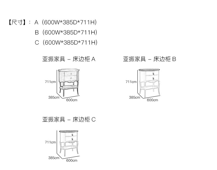亚振家具 - 床边柜 产品尺寸/示意图