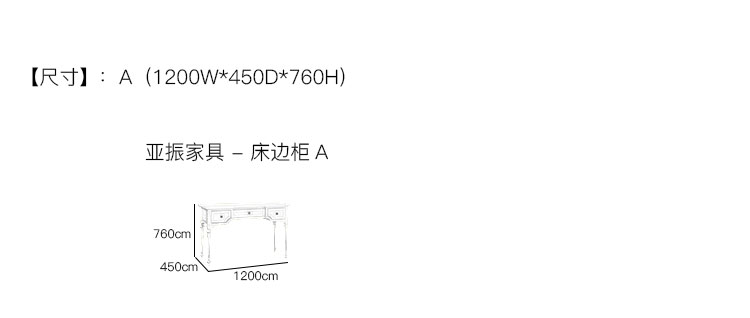 亚振家具 - 梳妆台 产品尺寸/示意图