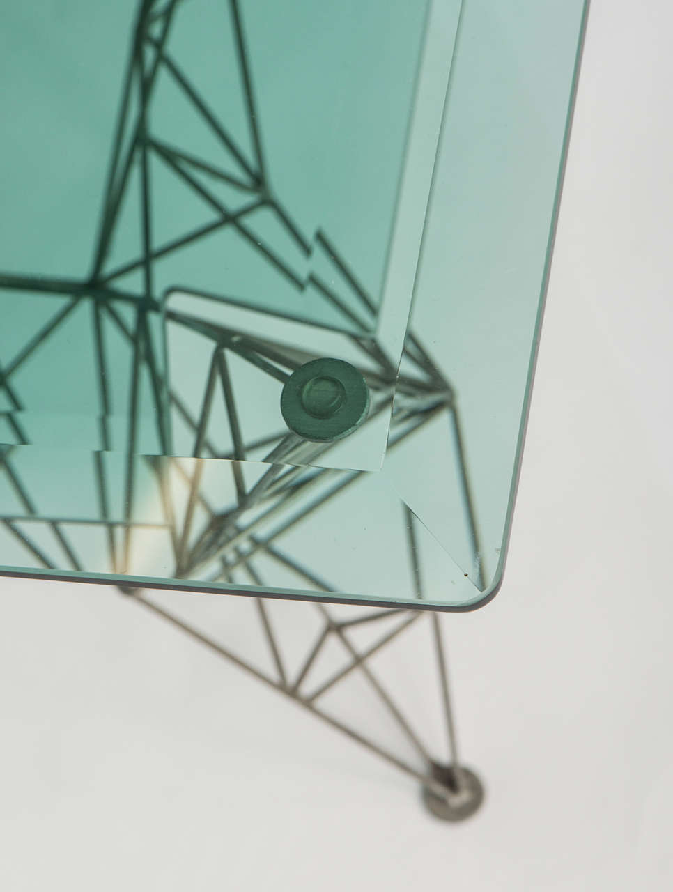 汤姆迪克森的灵感来自桥梁,塔和空间框架创造了这个美丽的塔咖啡桌。塔咖啡桌是一个焊接镀铜钢棒基础和烟熏玻璃顶部的组合。半透明,重量轻,功能强大的雕塑。