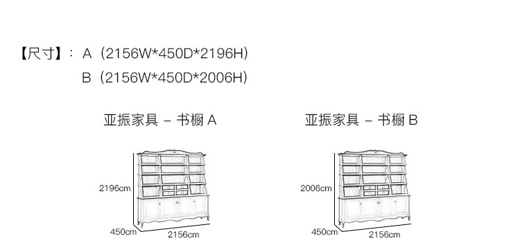亚振家具 - 书橱 产品尺寸/示意图