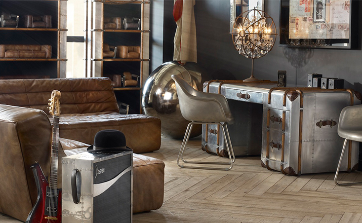 "慵懒、我行我素、精致、时尚,还有那么点怀旧的味道,Timothy Oulton家居的产品就是用这些无可替代的特点,征服了各国的英伦家具爱好者们。重提浪漫时代的长长的豪华海上航行,Globetrekker 系列的灵感来自Timothy Oulton于1914年在一个古董市场发现旅行箱,他深深的被复杂细节和美丽的黄铜板的旅行箱迷住了,Oulton拆解了那个古色古香的旅行箱并进行重新设计出一系列作品,它涵盖的灯表、 箱子、 咖啡桌和书柜等集合。捕获真正的魅力,还原精致工艺的旧古董皮箱的精髓,通过怀旧的贴纸饰面样式,采用老木、优质的老式皮革和黄铜铰链,通过精湛的手工处理完成了这套系列。