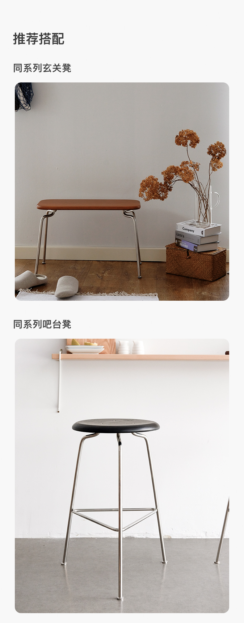 经典蚂蚁椅的设计师ARNE JACOBSEN说,美丽的线条带有微笑。我们不断调整, 直到它又舒服、又美貌。不锈钢的线条创造出神奇的光影,让眼睛随着线条流动, 宛转自然,也有视觉支点。背面同样精心设计,好看的角度一键全选。 使用实心的304不锈钢,坐下时,可能感受到小的缓冲,是金属特有的韧性和弹性。