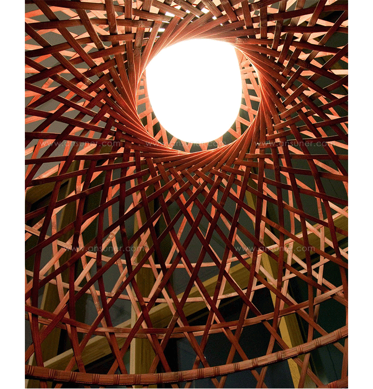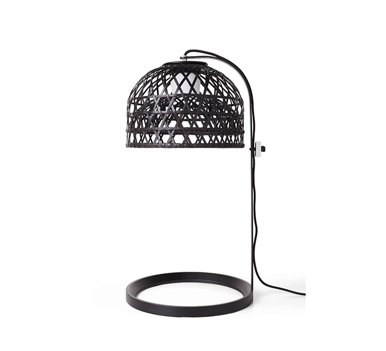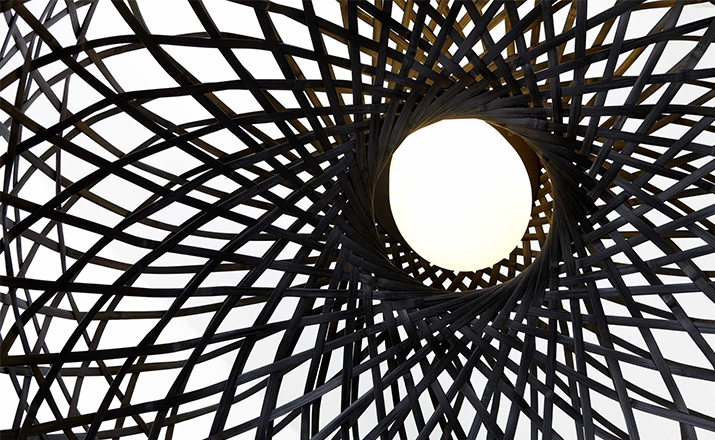 "This oversized light was inspired by a made-believe folklore story of an Asian emperor & a beautiful nightingale…Once upon a time an Asian emperor was given a nightingale as a gift. The bird was so beautiful and sang in such a bewitching way that the emperor fell immediately in love with it and decided to keep it forever by his side. So the nightingale was put in a beautiful, majestic cage in the imperial chambers & became the delight of the emperor's days…Neri & Hu took on a modern translation of this story and produced a collection of pendant/floor/table lamps in stained woven bamboo. The poetics of an emperor's life, a life no longer relevantin today's world, can be abstracted in the form of an object such as the light. The use of hand-crafted bamboo weaving in an industrial product creates an elegant yet uncanny design statement. A lamp so particular & majestic that it could become your personal nightingale forever by your side to brighten up your days.The Emperor collection includes suspension, floor and table lamps. They are offered with a glass diffuser that creates a very warm glow of light. Each cage is woven by hand and therefore has a unique character. Touch dimmer on table lamp is operated by touching the stem.