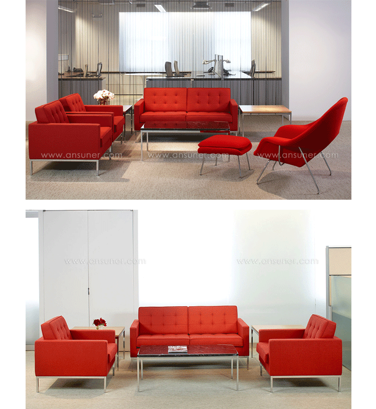 The upholstery of this chair is Italian leather,which is healthy and environmental-friendlyno allergy to skin, no pollution to environment;The pipings and buttons of Florence Knoll Sofa Florence Knoll Sofa florence knoll setteeare in the same Italian leather,no scratching off for years;The cushions are high elastic foam, offering a comfortable seating feeling and no losing shape for years;Two seaters,three seaters are available.