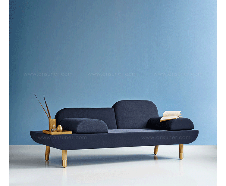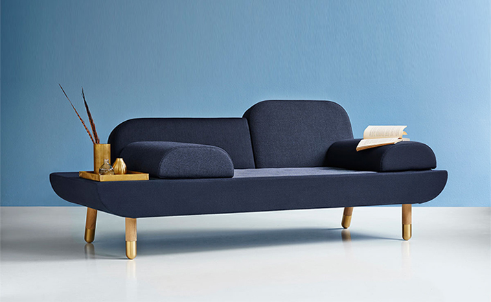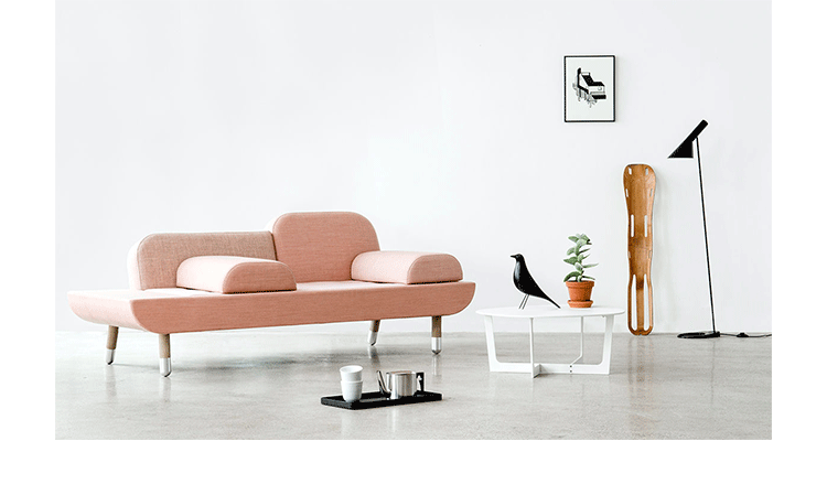 Toward is a comfortable sofa that allows the user to lounge in multiple ways.By merging the normal use of an armchair,a chaise longue and a tete-a-tete,the design emerged.Toward is a base with a mattress and two back rests in different sizes.The two loose and interchangeable cushions further opens up for a versatile appearance and function.To achieve a unique product with high aesthetics,a lot of consideration went into combining the color nuances and texture of the textiles chosen.The sofa comes in five color combinations:light gray,dark gray and brown,pink and dark blue shades with shoes in solid brass or aluminum.Every color combination consists of 6 different color nuances and textures from Kvadrat Textiles.