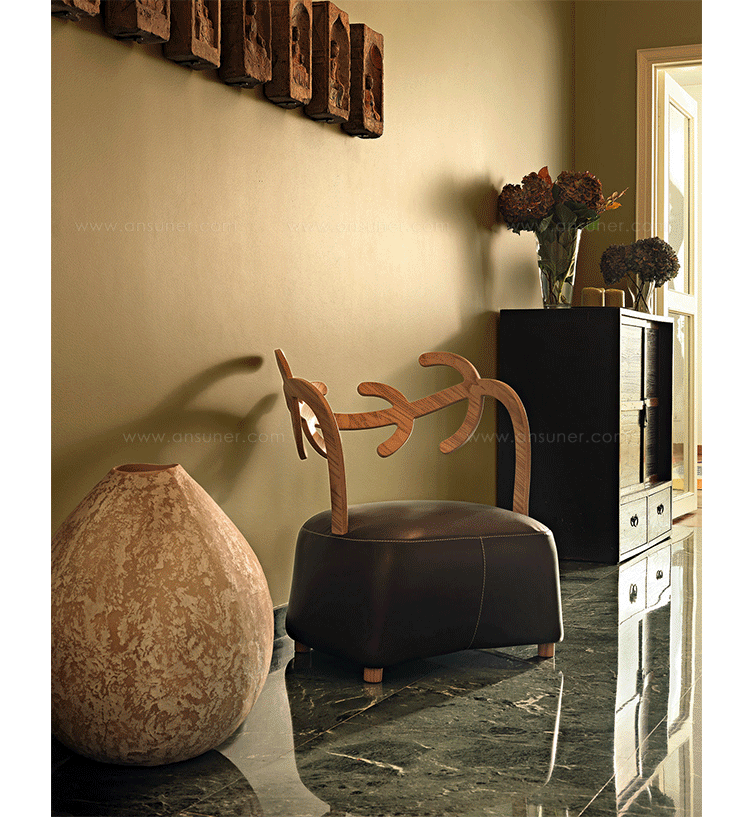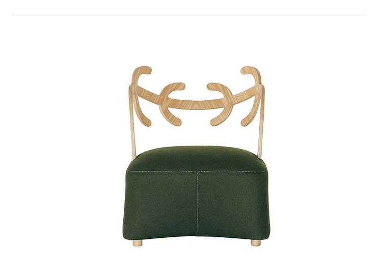 Antler Sofa(鹿角沙发)是日本设计师佐藤大(oki sato)设计的经典创作,低扶手椅、 组装固体灰橄榄树染靠背、 模塑聚氨酯的柔软坐垫,扪面装饰毛毡织物 (灰色、 绿色,浅褐色和暗褐色) 或皮革。明亮的封皮有对比接缝的棕色,暗色的接缝看起来就像沙粒的基调,腈纶纤维披覆藏羔羊毛皮的坐垫,固体灰色的脚架。