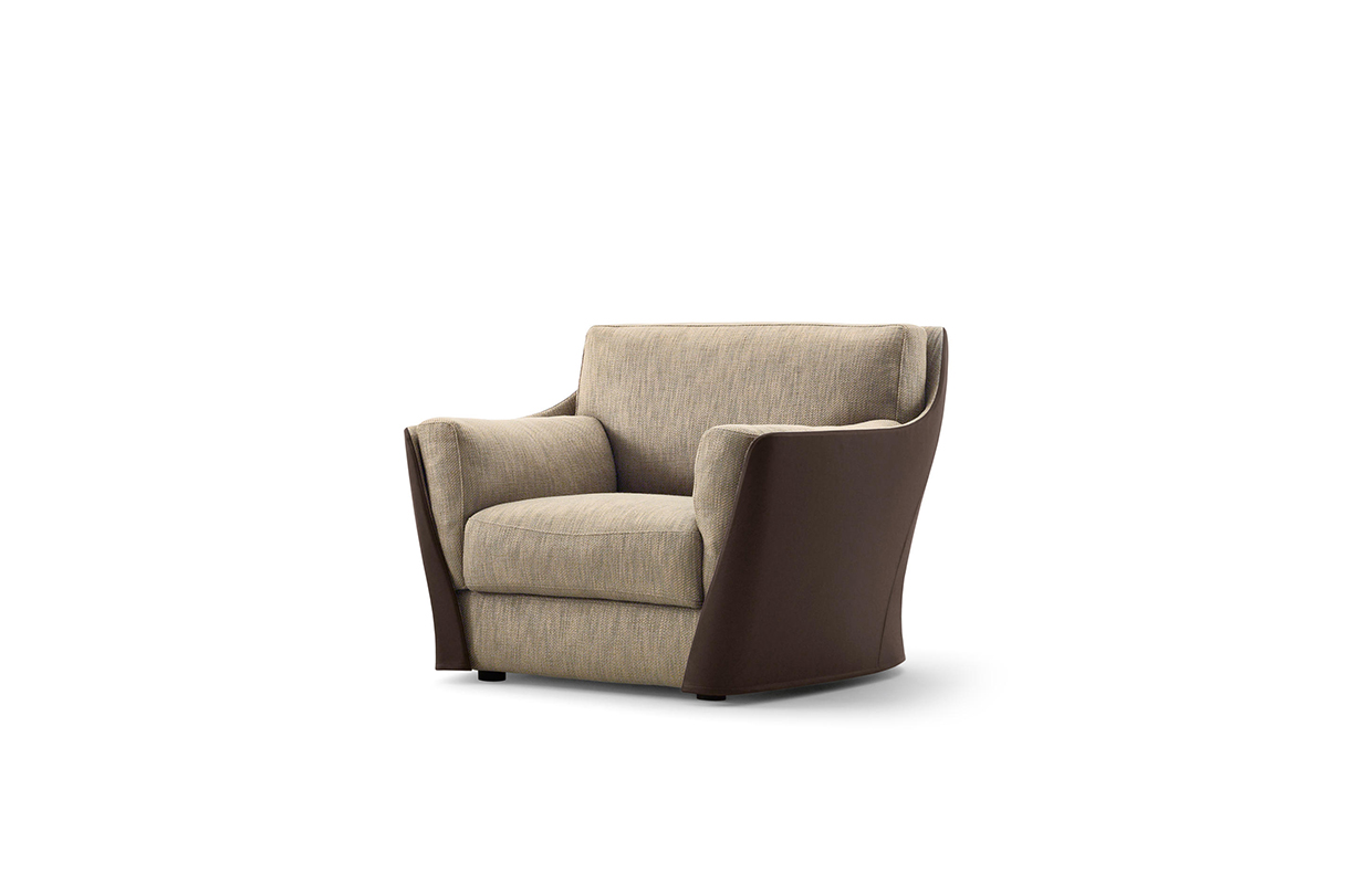 扶手椅和沙发的结构型钢的靠背,座位上的一个杨树胶合板和coldfoamed填充聚氨酯纤维覆盖。 靠背和坐垫上的鹅羽毛,最后在扩大聚氨酯的插入。 家具,完全可移动的织物或皮革,可以是一种颜色或两种颜色在皮革和内部外部织物或皮革。 一个在鹅的羽毛垫扶手椅和两个沙发的推荐.
