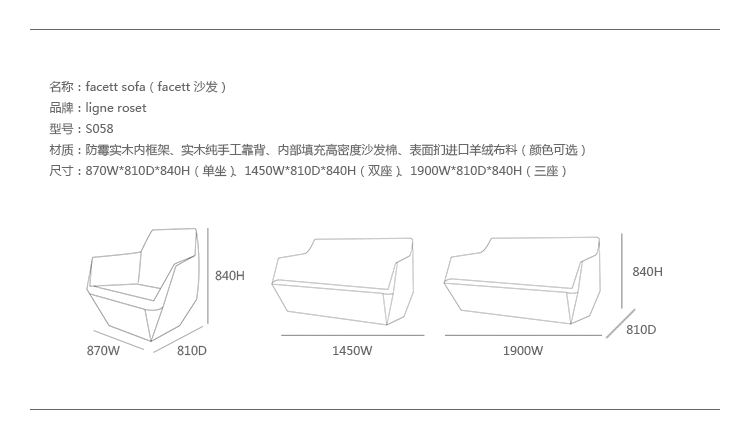 Facett沙发来自写意空间的设计师Bouroullec兄弟,其设计灵感来自于充满童趣的折纸游戏,所以我们能看到产品的造型具有几何色彩,丰富的折线仿佛随时会变出一个个多边形,给人意想不到的乐趣。写意空间Facett沙发不像多数布艺沙发那样走柔美温和路线,它刚毅硬朗的线条仿佛是轮廓分明的男子,给人坚毅的感觉。无论是暗灰还是明黄,冷色还是暖色,都传递出冷冽的质感。搭配在黑白空间里,是最合适的选择。除了造型,Facett沙发采用的布料也很特别,并没有追求植绒的细腻和棉布的柔软,进口布艺充满立体感,非常符合沙发造型的设计理念。家里摆放这么一款家具,即使不使用,单纯用来欣赏也是值得的。