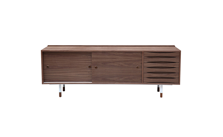 arne vodder mid century modern credenza(arne vodder世纪中期现代书柜)是Kardiel公司制作的经典实木家具,具有世纪中期的现代风格。Arne Vodder书柜拥有三个隔间部分,一个隔间由6个滑动式抽屉组成,其余的两个隔间由2个中等及较低的架子格子组成,能够完成最大化存储。这些抽屉都能够通过金属滑动的滑动门打开或关闭。制作采用精选MDF板基材胡桃木或水曲柳木皮贴面、胡桃实木或水曲柳实木脚架、环保油漆喷涂、做工精湛。
