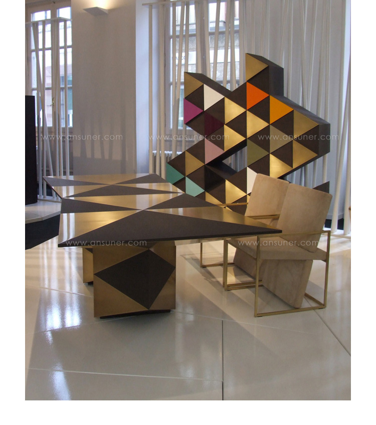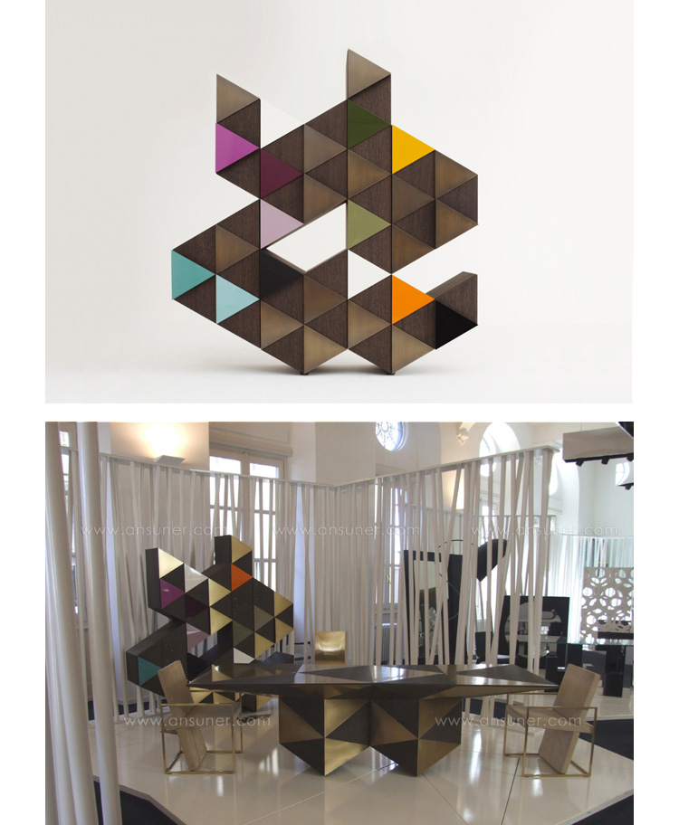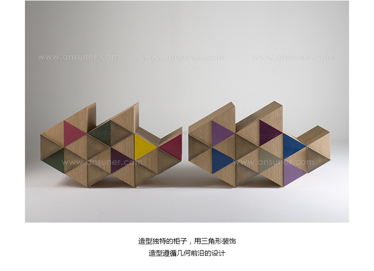 橱柜与雕塑不寻常的形状,配有门、装饰的三角形,塑造遵循几何方面的设计。