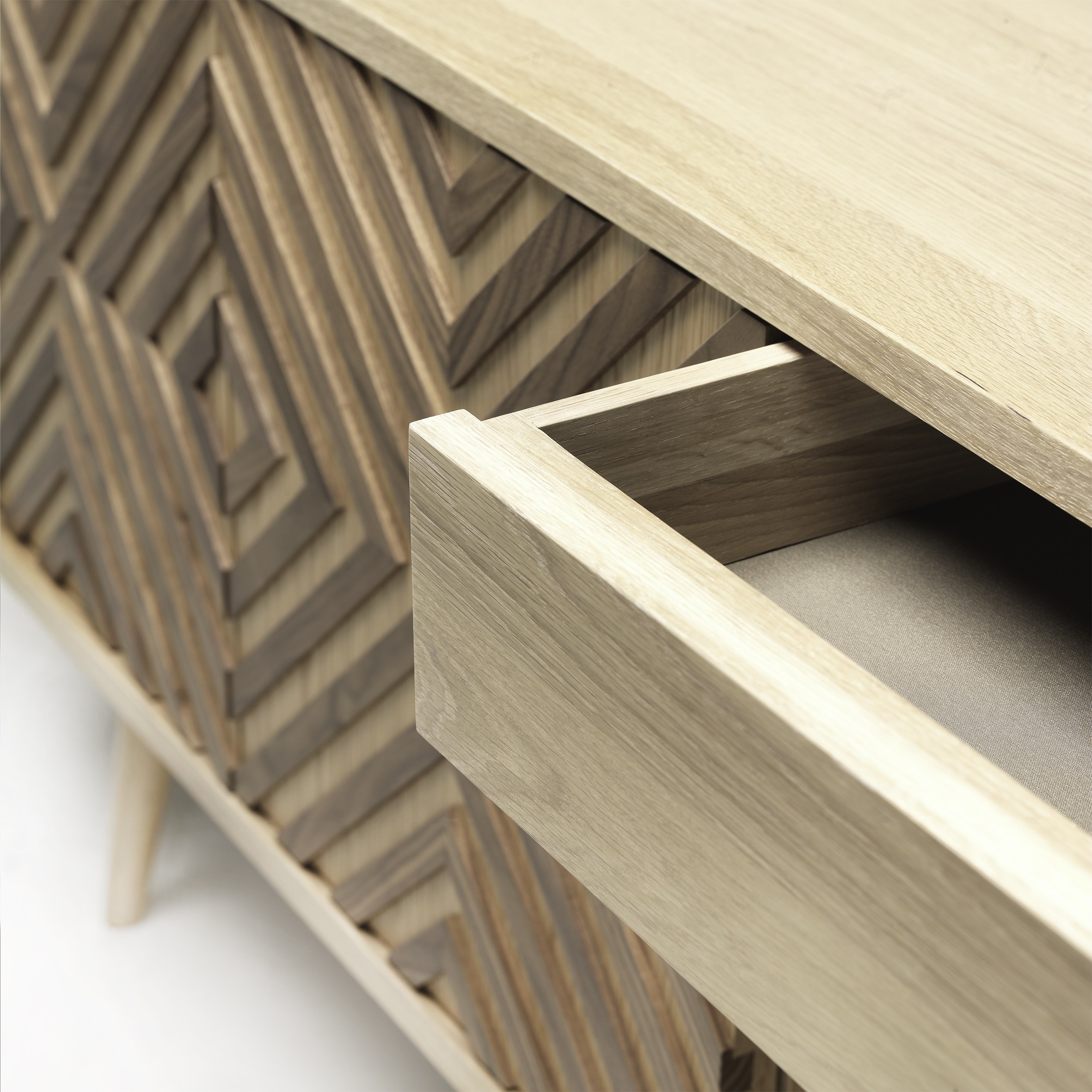 Casanova餐具柜:卡萨诺瓦是一块实木在100%,这可以是一个电视柜或简单地作为一个餐具柜。 门上的图案复制是由块橡木,胡桃木是固定的,熟练的工匠工作结合高质量的材料。 卡萨诺瓦是由五个空间:两个橱柜与滑动门,两个抽屉和一个开放的空间,两个可调节的架子,提供一个最佳的存储空间.