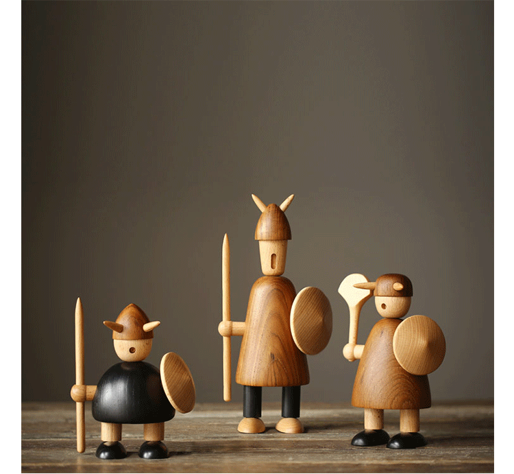 由于50年代的丹麦活跃着一股「斯堪地那维亚现代主义设计」风潮,延续低调简洁的风格并大量采用自然木材与传统工艺所迸出的美丽火花,设计大师Jacob Jensen也致力其中成为见证历史的大师之一。Jacob Jensen Wooden Viking(维京海盗)是经典的北欧形象,随着《加勒比海盗》系列电影的风靡,维京海盗在骁勇彪悍的传统形象里增加了俏皮、温暖、幽默的一面。这一组维京海盗形象为主题的北欧木雕设计,正是基于如此可爱的解读而做,摆在桌面上形成了饶有趣味的场景感,也是用来赠送的高档礼品。