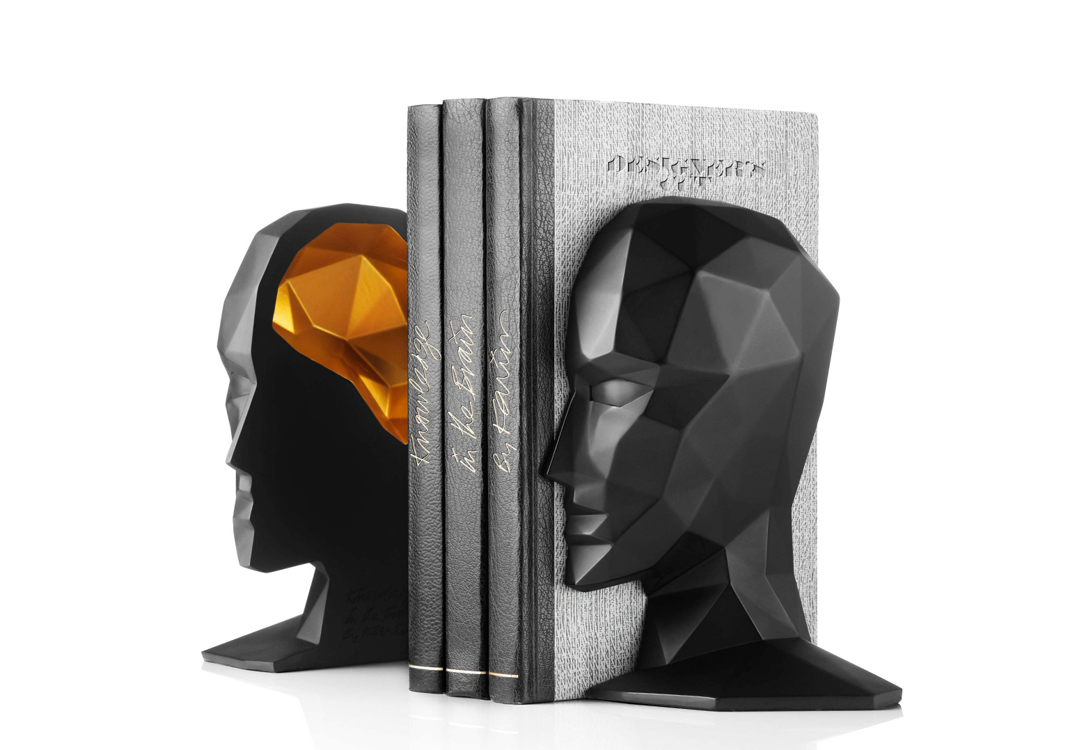 卡里姆·拉希德是他那一代人中最伟大的设计大师之一。当我们让他自由设计一个用于独立的书档时,他创造了一个真正独特的书档。基于他自己头部的三维表示。然后将石头树脂形状切成两半,用不同的颜色展示大脑,这样它就有了自己的生命。这是一个经典的书档,可以用一点额外的知识把你所有的珍贵书籍收集起来。