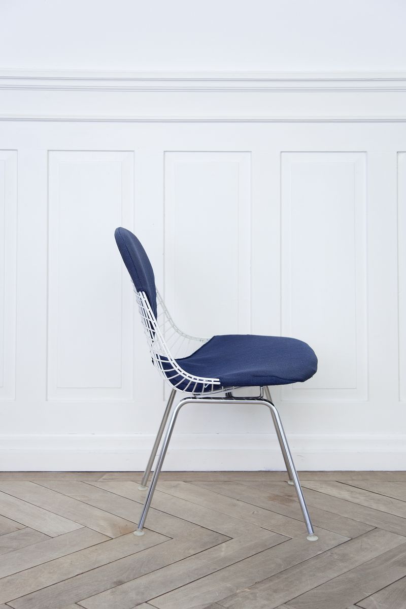 DKR 單椅結合了 Wire Chair 的網狀金屬椅座搭配鐵塔椅腳。
