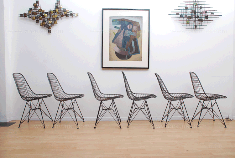 Charles & Ray Eames 1951 年發表的 Wire Chair 系列,以一片式有機網狀椅座,延伸變化出一系列不同椅腳及座墊搭配的單椅,這系列椅款輕巧透明的設計,在 60 年代可說是運用了當時最先進的技術來製作,靈感則是來自於鏤空的金屬收納籃,金屬條交織的椅座,彎曲的弧面不僅符合人體工學,在視覺上更具有穿透性。