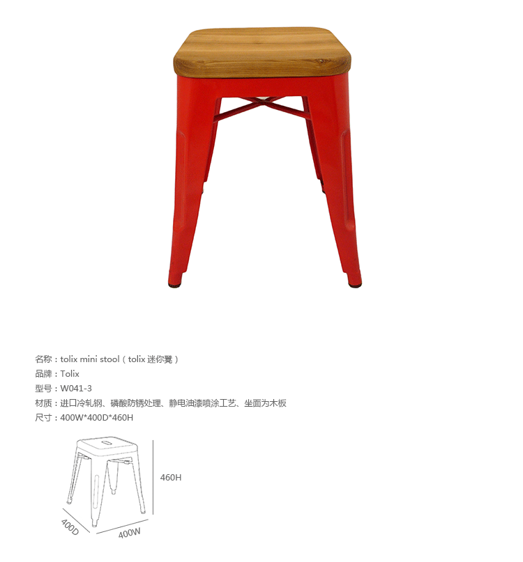 tolix chair(tolix椅)一把有味道、有态度的椅子,据说它最开始被使用在一艘战舰的天气预报房间里,故事的真实性与否不得而知,但是不影响其成为享誉世界的著名设计家具,1934年由Xavier Pauchard设计,早期是作为户外用家具设计,力图展现法式慵懒而闲适的气质,经年而来被全世界时尚设计师所宠爱,从室外扩展到家居、商业、展示等多个用途,而此椅也不负众望在各类空间中均有上佳表现,特别是近年来与混搭、乡村、美式、怀旧、北欧简约、中式等主要装修风格搭配,都呈现出独特的韵味,也被时尚界赞为“百搭第一”椅,可以用在酒吧,餐馆,咖啡馆等等地方,之后通过改进,设计出有扶手版本的tolix armchair(tolix扶手椅),高背版本的tolix high back bar stool(tolix高背吧凳),宽背版本的tolix wide back bar stool(tolix宽背吧凳),及tolix bar stool(tolix吧凳)和tolix mini stool(tolix迷你凳)。制作采用进口冷轧钢、磷酸防锈处理、静电油漆喷涂工艺、坐面为木板或PU海绵坐垫,颜色可选。