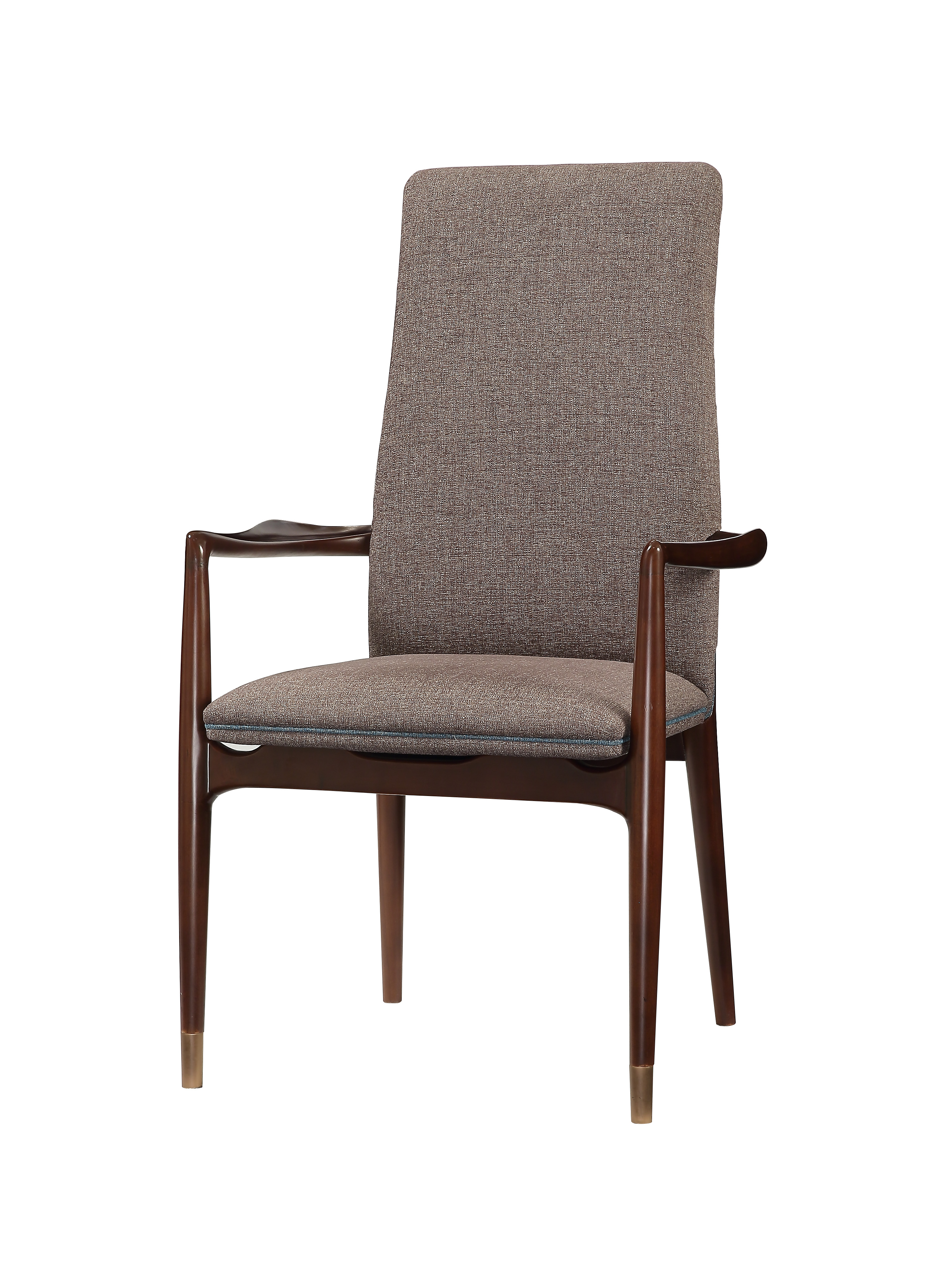 布包饰工艺,由经验丰富的技师手工独立完成,确保美观、耐用又符合人体工程学;铜脚,赋予中式韵味的同时以防磨损。圈椅的影子投射在这把写字椅上,简练的线条呈现中国文化的精深。