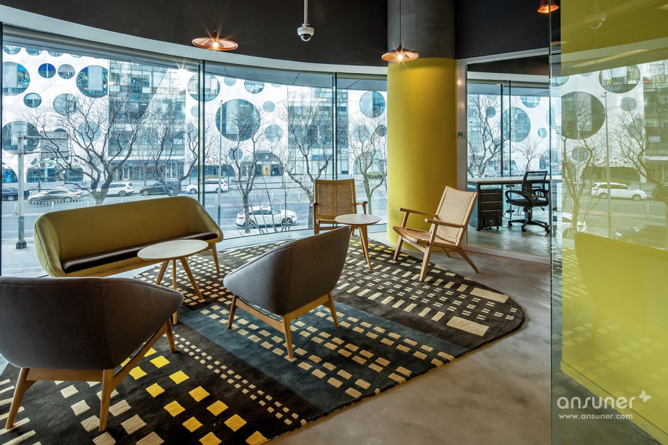 在空间分区方面以繁华摩登的国际大都市元素抽象成缤纷色彩,浓缩“绽放”在3Q办公间的墙壁或地板上。以色彩区分行业分公司:地下一层以文创等新兴品牌为主,楼上二层以金融地产等传统行业为先, 精巧构思和生动灵性的设计语言,不单丰富整体的设计感,更巧妙的让租客更容易识辨位置!此外,运用布局风格变换办公间功能,这样活力满满又实用的设计,将3Q办公间的前卫设计和实用功能完美融合。
