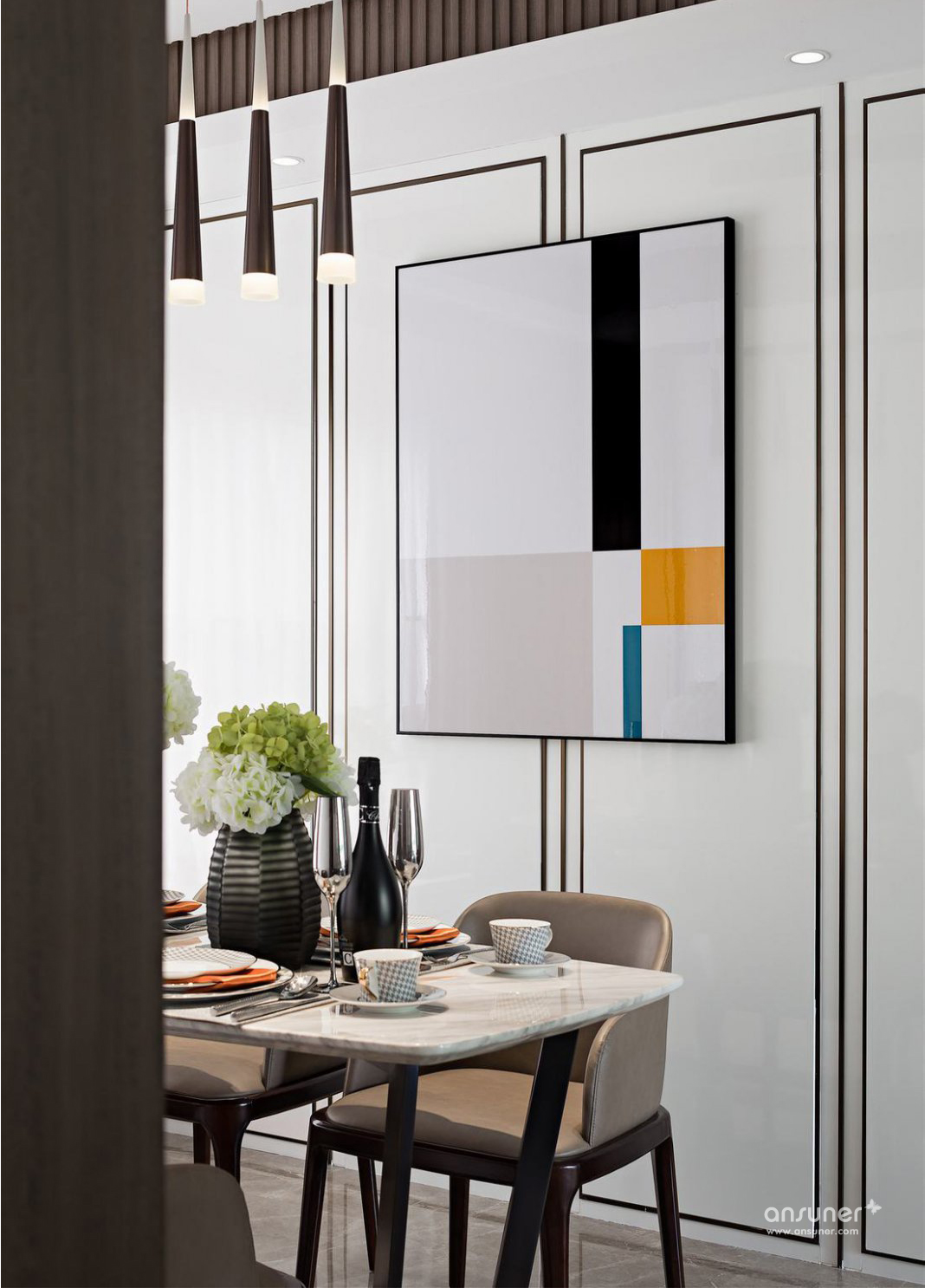 将优雅、理想的现代家居氛围逐步融入这个空间。