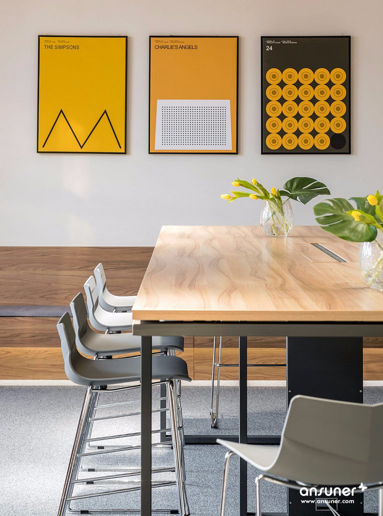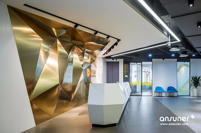 一间具有创新精神的新锐互联网公司需要怎样的办公空间?通联数据从一个非传统方正结构的前台开始,开启颠覆性的空间组织。“时尚雅痞”成为风格基调,设计从星球大战中获取灵感,采用富有未来科技感的视觉元素。走廊等公共空间中使用了多边形及放射性的设计语汇,不同材质穿插其间,增加了空间的层次感,并在视觉上尽可能地延展空间。开放的办公空间内,员工工位可以进行灵活组织,根据需求进行变化,打破了传统办公的层级观念。墙面上使用方便涂写擦除的材料,并配备了充分的储物空间。