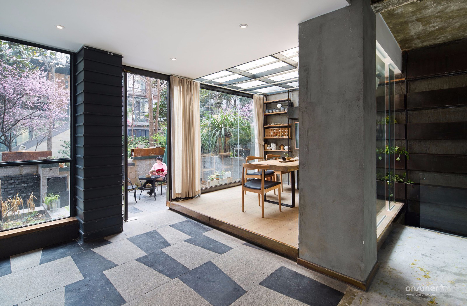 踏进TCD,马上就能感受到整个空间的情绪。冷静的混凝土元素,粗糙的柱壁,灰暗的水泥地面,使空间宽阔且同时具有整体性。