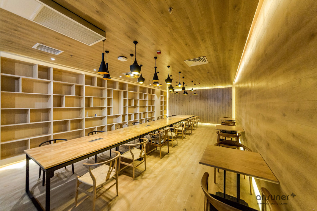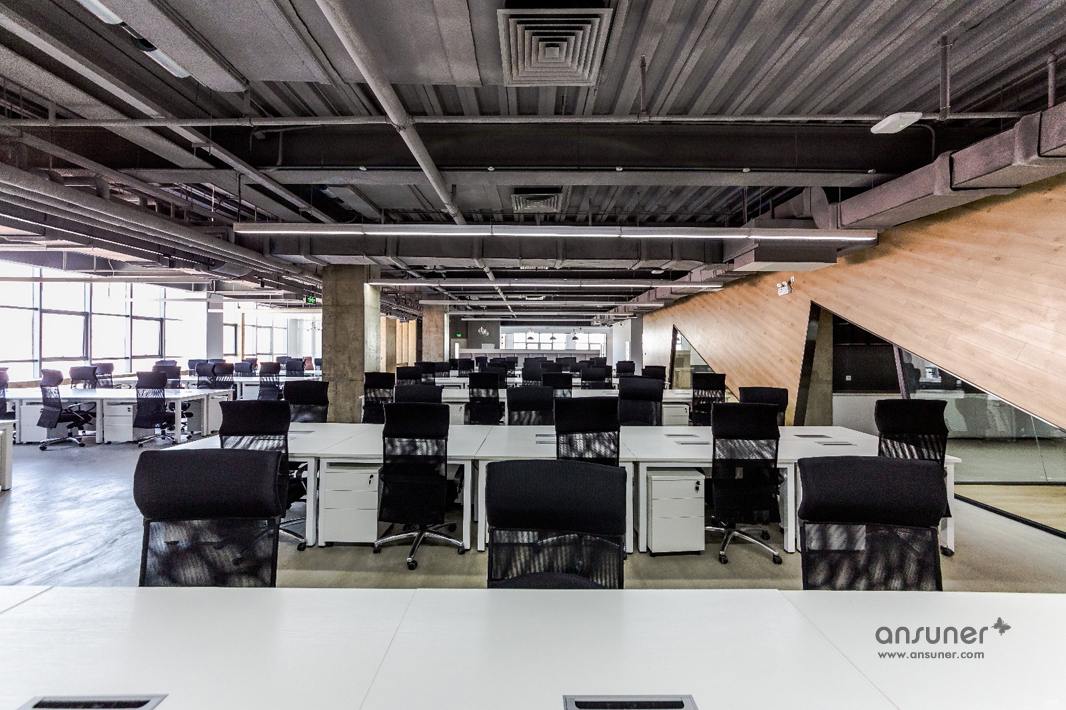 圆弧形的会议室和休闲区是本次设计的核心,也是凸显共享和交融的重点,通透的玻璃会议室和无遮拦的休闲区设计形成完美的结合。休闲区的设计得益于当今的科技发展,移动式办公成为可能。标注办公桌渐渐转化为共享办公桌,多元化的移动办公方式提供了更丰富的选择。个人固定办公桌时代已经成为过去,员工要考虑的事情就是选择哪里更合适今天的心情、今天的工作。