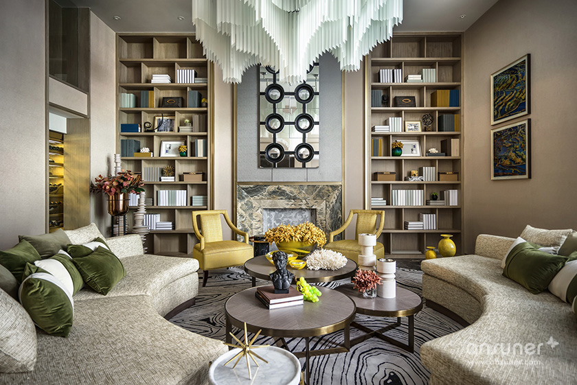 “在我看来,文化的自信与东方设计的回归,不应该仅仅停留在符号、图案、款式、线条的表面异变......甚至,在艺术与审美上,东方和西方并非泾渭分明的。”她说:设计以玉石之王翡翠的色彩,应用于灰色的主调空间,以丰富的家居配饰元素、鲜明的色彩层次及质感的材料运用,呈现了浪漫、灵动的空间之美,让这个五层的别墅呈现了绝美风华。